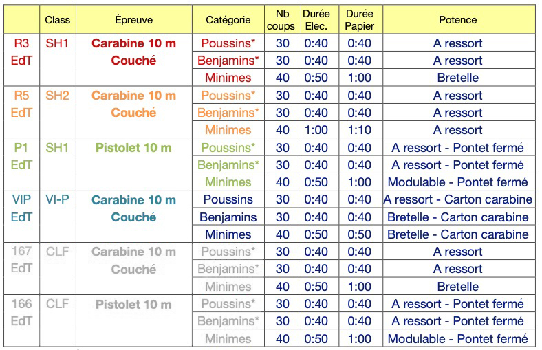 Pour les déficients visuels, les systèmes VIASS et VIS500 d’Ecoaims sont autorisés. Les temps de tir ci-dessous ne prennent pas en compte les 15 minutes de préparation et d’essais.