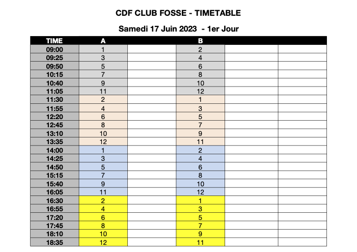ATTENTION LES HORAIRES DE LA COMPÉTITION ONT CHANGÉS