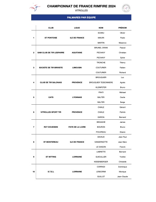 Les inscriptions à Sélection Nationale Rimfire sont terminées.