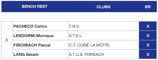 Gérard LANG termine 18e avec un agrégat de 0,4966 pouces et Monique LENDORMI 41e avec un agrégat de 0,6097 pouces.