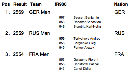 La bagarre est terrible, les russes sont de sortie, les croates menés par Domagoj PEREGLIN (875), l’allemand Benjamin BESSERT 867 donne le ton pour leur équipe. Mais un match par équipe n’accepte pas de faiblesse.