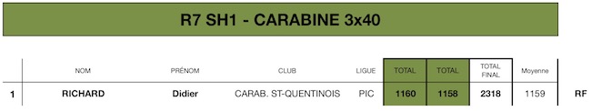 - Carabine 50 m (R6 / R7 / R8 / R9) : 2 matchs